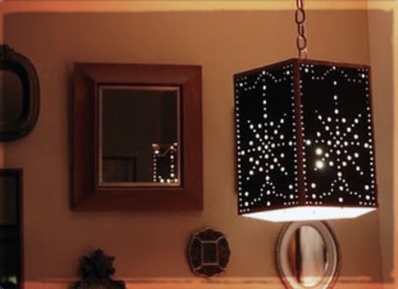 If your ordinary lamp looks like it needs some refurbishment now, here is a hack. Provided, the lampshade is of a dark hue, you can conjure up a design by poking holes on it. Alternatively, draping another fabric over the old one can be quite appealing too.